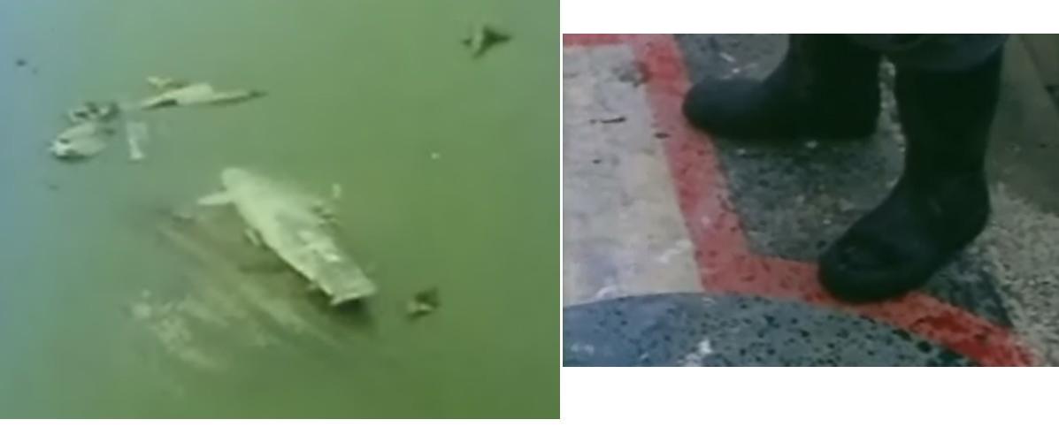 Below: his part of Lake IJsselmeer (Old Zuyder Sea) was made into land 1960. Dykes were laid around the area and water was pumped out. In 1968 when one meter (3 ft) of water was left, a Dutch helicopter (based on shadow an Alouette III) took underneath photo of an aircraft wing that emerged. Location was north of Huizen. Pilot marked rough location on photo. The spot was unknown before and not marked as underwater obstacle or known aircraft wreck on the sea charts 1943-1968. This because the location was not fished and the fishermen therefore never reported it. The wreck lay exactly in the shipping lane Amsterdam (Pampus) to Kampen (entrance IJssel River).