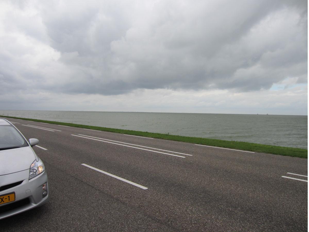 Below. View from the dyke towards the crash and recovery position in distance (thin low island). The sand dam that was constructed by the engineers towards the thin island was demolished. Before 1960 this was all sea. The dyke with this road was functional in 1965 and used during the recovery as base to get to the crash position.