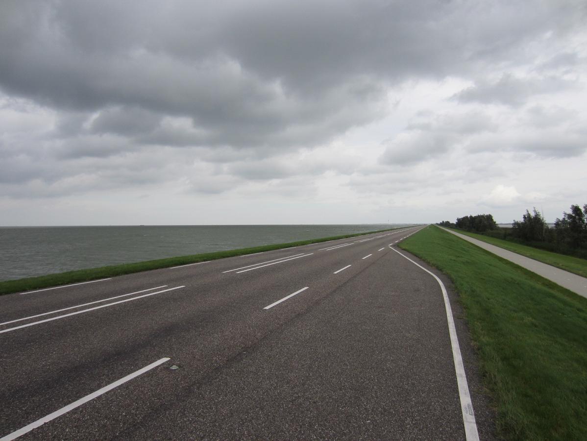 Below. On the dyke, view to the other side, towards Uitdam (centre-left). In 1943 this dyke-road and visible green islands did not exist. It was water all around.