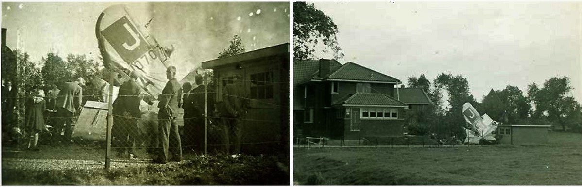 Tail section of Gregor's '107070' at Westersingel street no. 6. First civilians and minutes later German soldiers arrived on the scene.