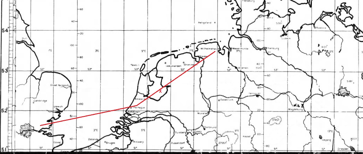 Operation Steinbock were a series of bombings on London early 1944. In the night 3 on 4 February 1944, the German KG54 dispatched several Ju-88 for this operation. They flew from airfields in northwest Germany, via The Hague towards London and back, See below map. As many attackers in Operation Steinbock, also Ju-88 no. 550283 (B3 + EK) piloted by Uffz. Helmut Weiss did not return. For the Germans it became clear that 550283 had crashed somewhere in Lake IJsselmeer (former Zuider Sea) because all four crew were recovered from the water in the days after the raid.
