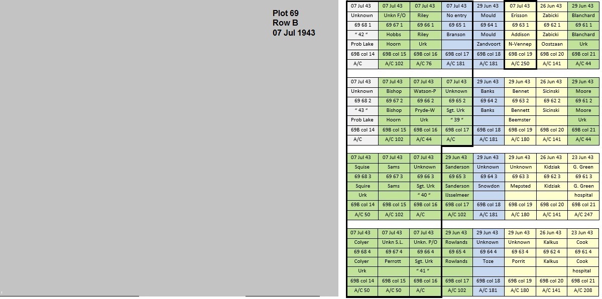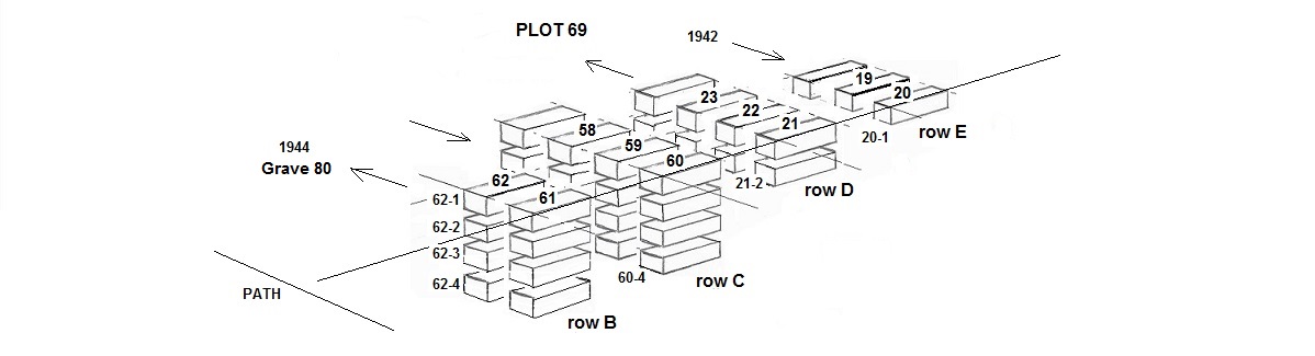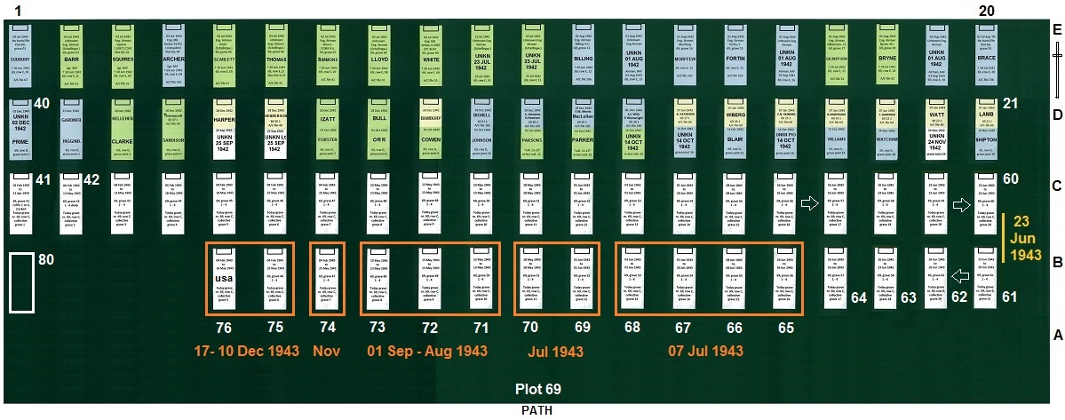 Above image: Top view on Plot 69 and interment July-December 1943.