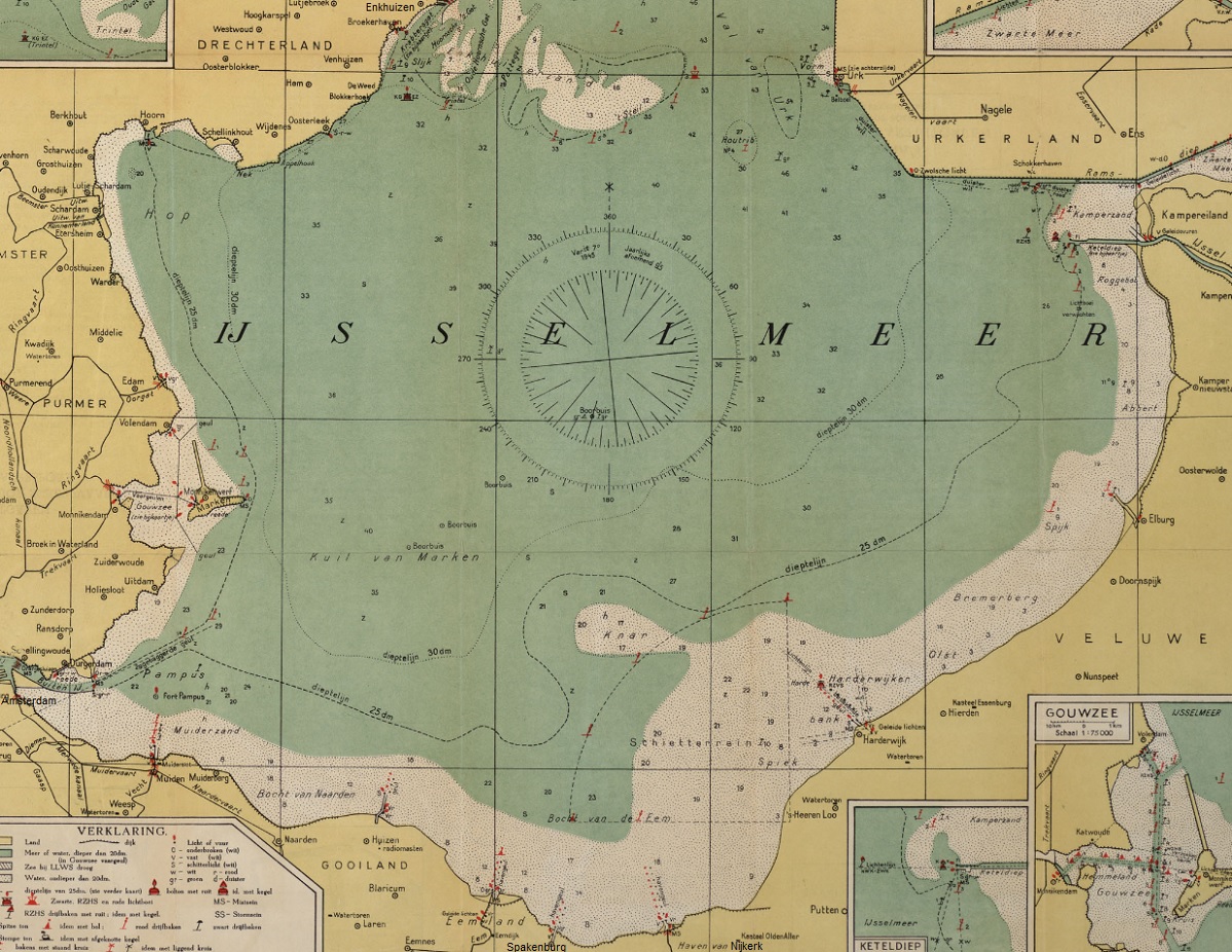 Map of the Lake IJsselmeer (former Zuyder Sea) southern section in 1943