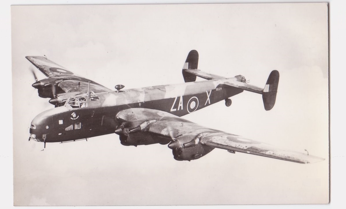 Under: War time post card of Halifax BB324, ZA-X, with nose art "Haigs For Victory"