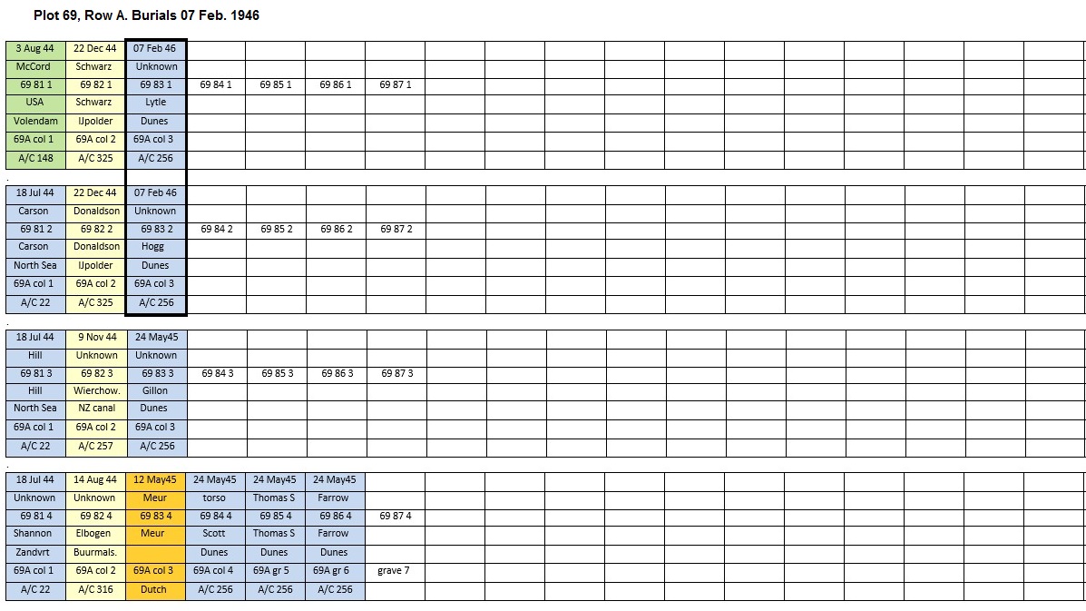 The burials of 7 Feb. 1946 were the last entry of Allied casualties in Amsterdam. In grave 87 (gr. 7) and onwards dead from Plot 72 were later reburied.