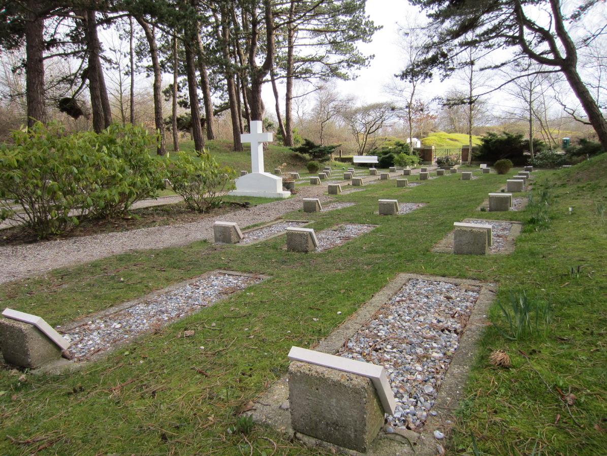 Dutch newspapers report that on Sunday 28 July 1940, four French soldiers, one of them an officer (Marquézy) washed ashore here and were buried on the 30th July 1940. A day later again 17 soldiers washed ashore, found by three young man that were swimming. One bumbed into a floating corps. The men laid the body on a plank that the sea had delivered on the beach (driftwood). When they looked closer, they noticed more bodies in the water and recovered them all. Spread out on the beach and based on the uniforms, it could be made out that 14 of them were French, 3 were British.