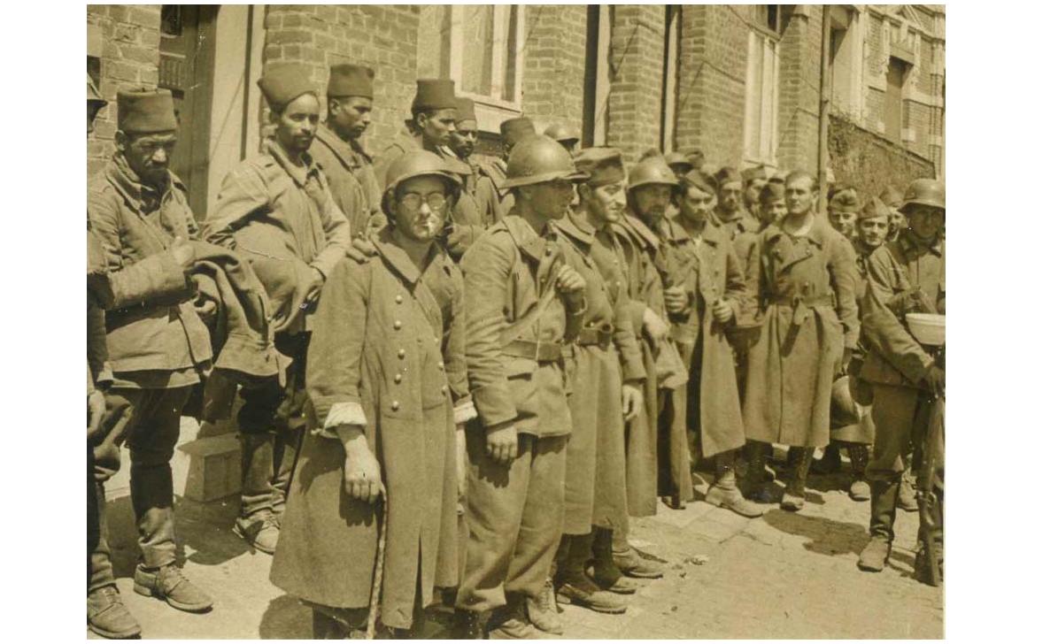 Below photo: POW French troops in Dunkirk, June 4th 1940. Below group is typical for what the Emile Deschamps had on board and is buried here: navy crewmen of the ship itself + remnants of French-Moroccan rifle regiments and their French NCO's and individual soldiers from all kinds of French army units.