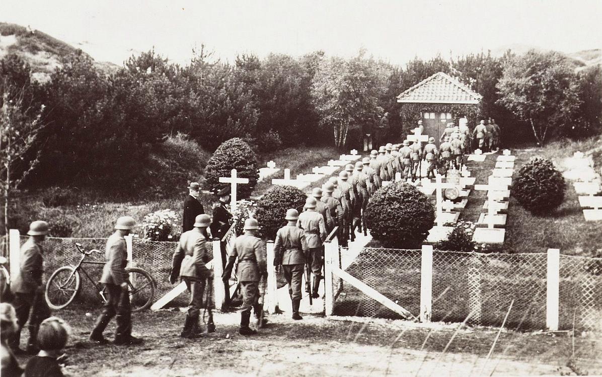 Photo below: German troops are walking towards plot 2 for attending a funeral with large military display. Date is 7 August 1941. Notice on below photo that all French graves on plot 1 are in position. The last empty spaces on plot 1 will be filled in 1943.