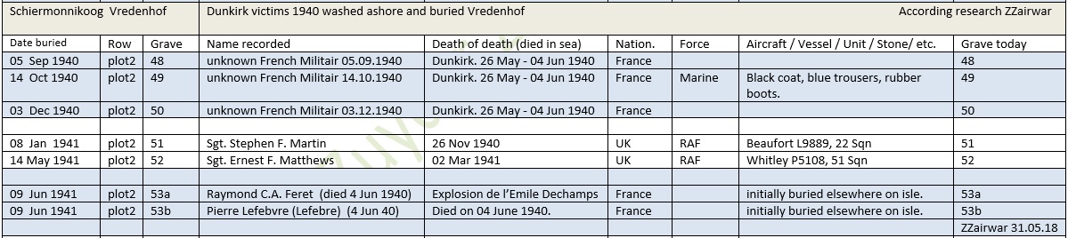 - 7 French soldiers and sailors (1940, Dunkirk), identified (including Fernand Lafosse).