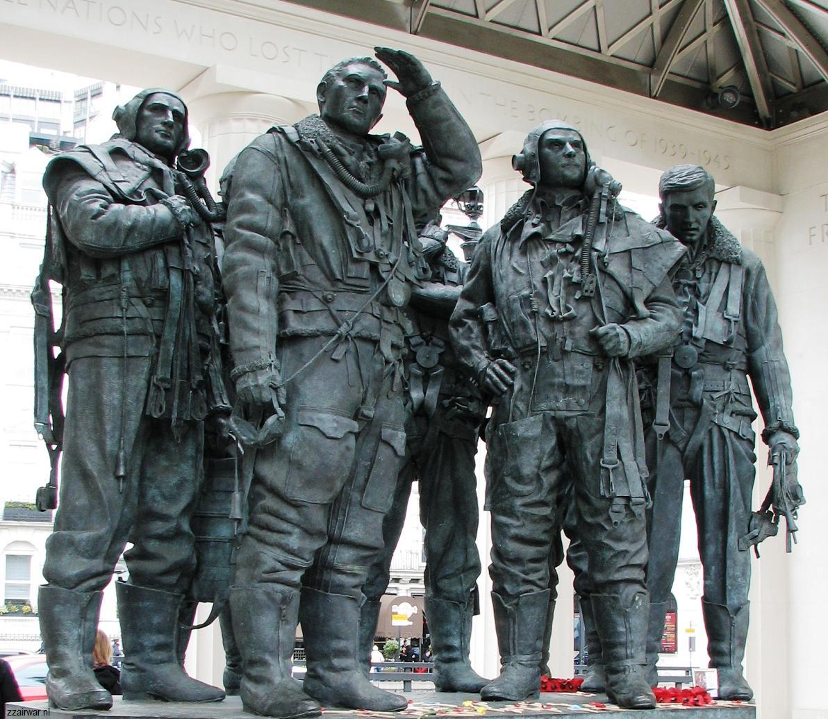 The London Memorial (year 2012, see below) commemorates the 125.000 airmen who served in RAF Bomber Command during WW2. 55.573 were killed (44,5%). Of them today still 20.000 are missing. Also the American USAAF lost 48.000 men KIA 8th, 9th & 15th Air Force combined. Over NW-Europe over enemy territory and sea, 5945 American heavy bombers and some 5000 fighters were lost with 21.500 KIA and 13.000 MIA. The reason so many airmen are missing, is that thousands of aircraft had to take the deadly northern 52°-54° parallel-05° E route over Northwest Holland and were shot down over sea or came down damaged in water.